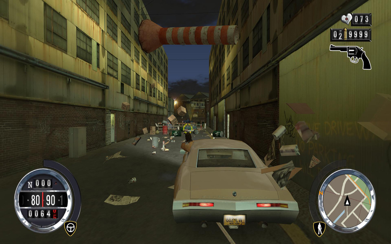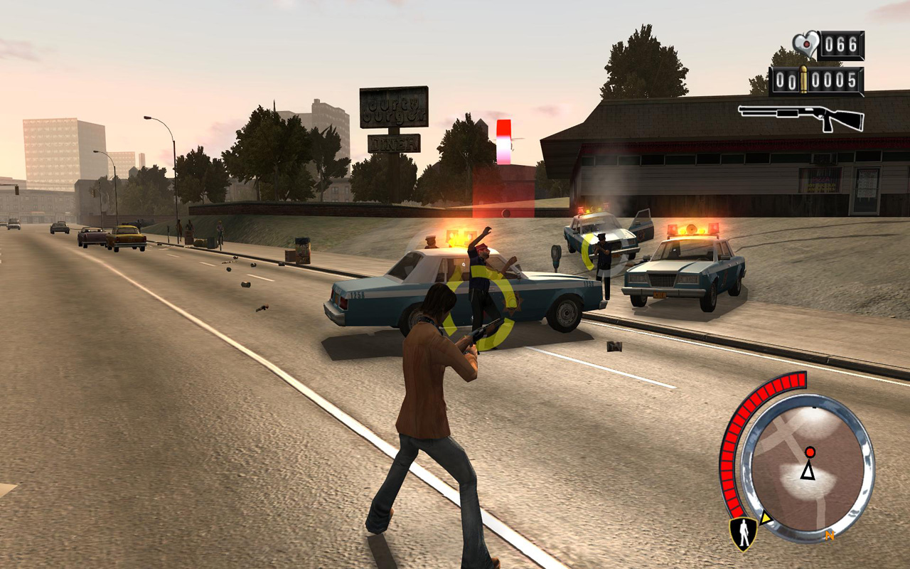相手を追いかけながら銃を乱射する“ながら運転”のため,なかなか難しい。あまり派手に暴れすぎると,手配度も上がりパトカーとのカーチェイスにもなる。取り立て屋も大変だ。無事に1500ドルを稼いでラガーディアに金を返せばミッション完了。レイには感謝してもらいたいものである。