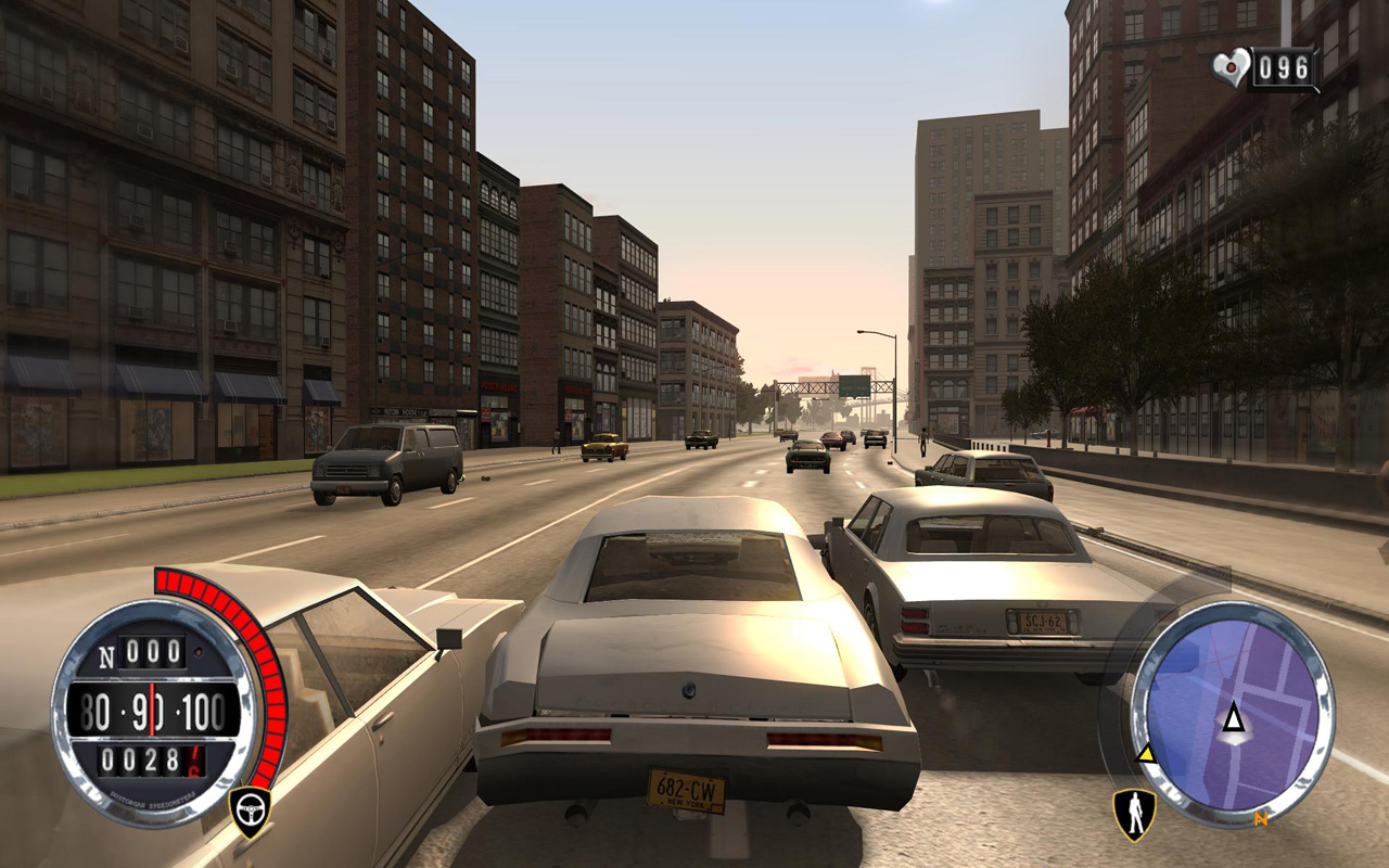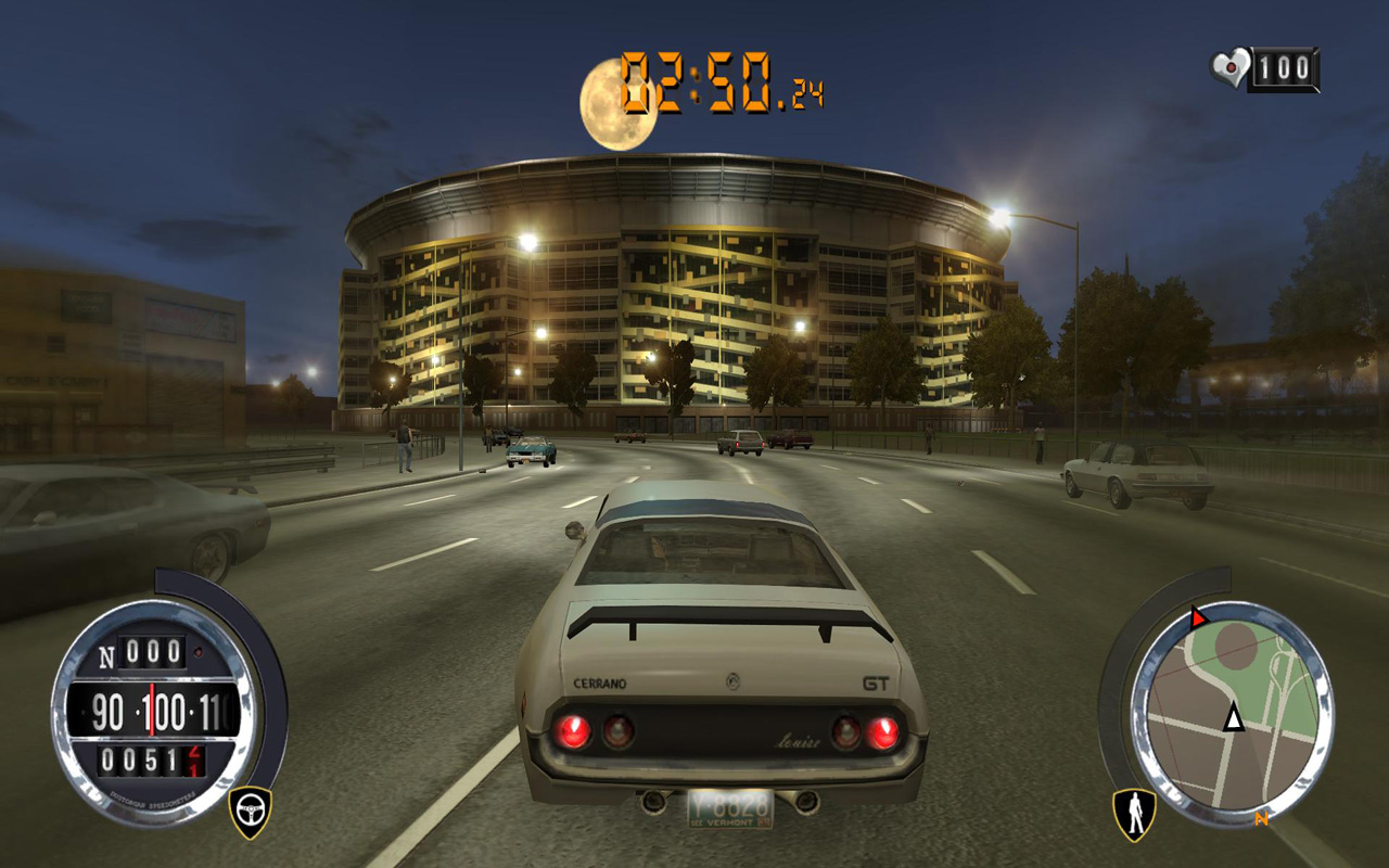 派手なカーチェイスシーンや水着&下着(?)のお姉さんが登場するオープニングムービーをウキウキしながら眺めていたら,いきなり強盗の逃走を手助けするドライブミッションが始まった。こんな仕事は朝飯前だぜってなわけで,一般車の間をすり抜けながら,パトカーの追跡を振り切り,強盗を目的地まで送り届けるのだ。すると100ドルの報酬が得られる。こんな感じで,ヤバい仕事を次々にこなしていくわけだ。
