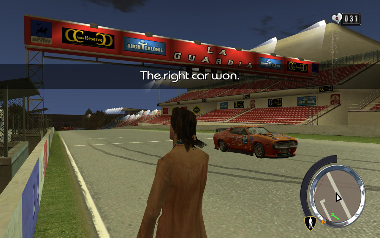 ハインツポイントとラガーディアのレースに参加して,指定した車を優勝させろとのこと。どうやらそいつに賭けているらしく,八百長レースをやれということらしい。一昔前の悪党といったら,八百長は定番の一つだ。