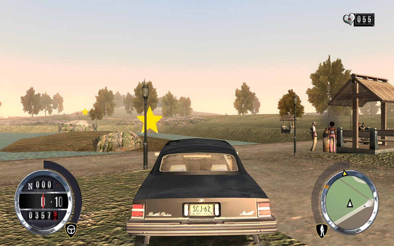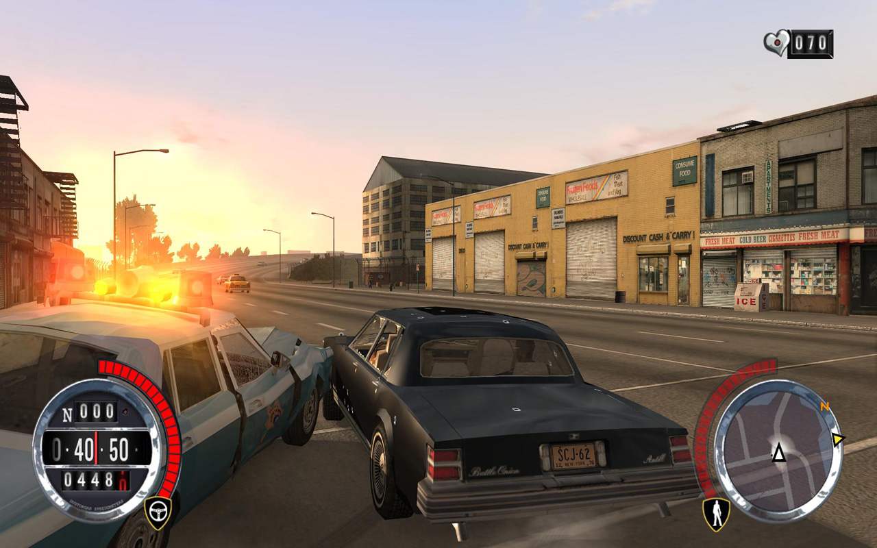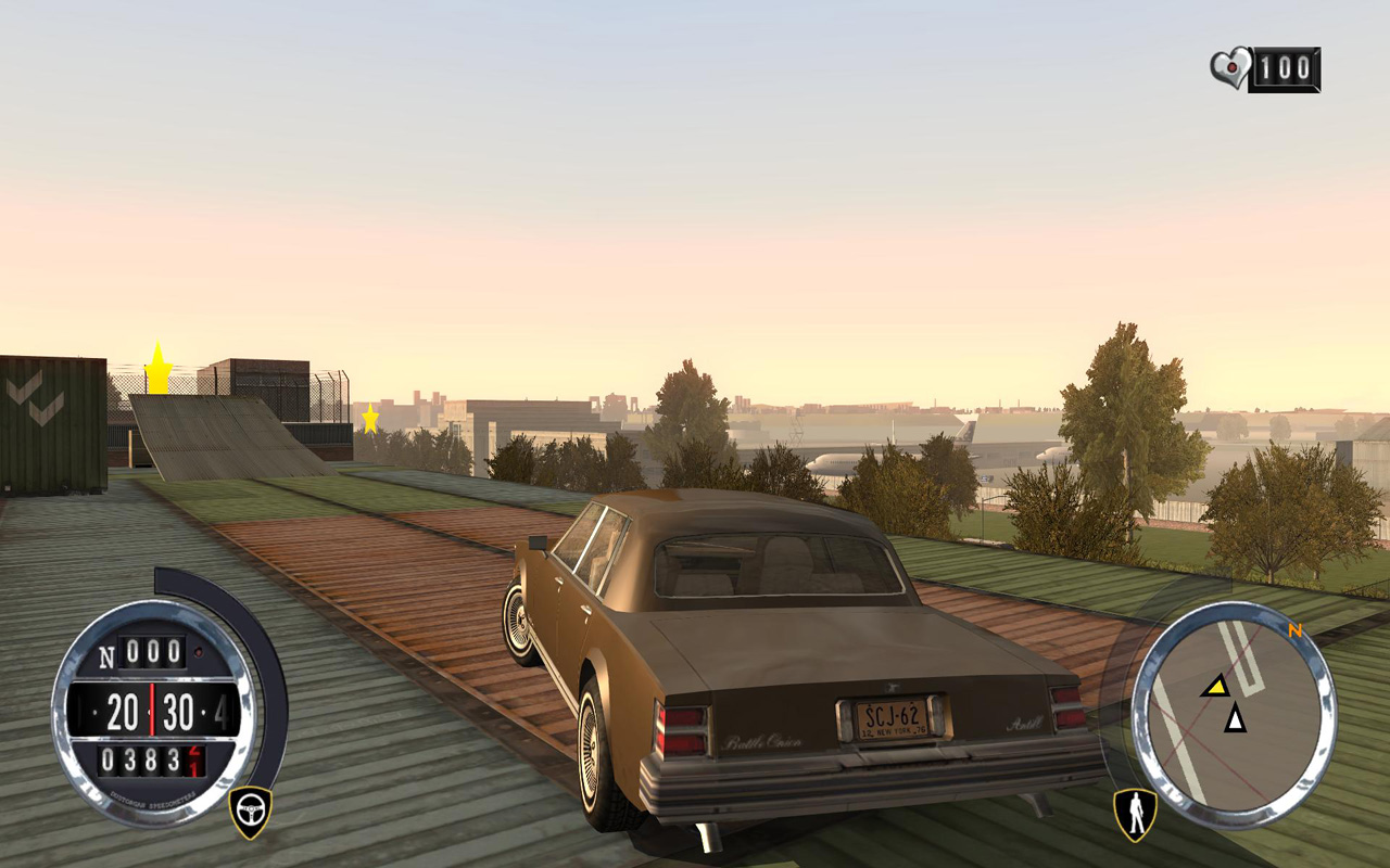 ミッションを進めていくうえで,もう一つのお楽しみとなるのが,街中のあちこちに配置されているスタートークン(星マーク)を集めることだ。簡単に獲得できるものから,建物の上のほうなどの「どうやって取れるんだ?」というものまで,1978年,2006年のどちらのマップにも50個ずつ,合計100個のスタートークンが配置されている。スタートークンはまったく集めなくてもミッション進行自体は問題なく進められるが,スタートークンを10個集めるとライフが50%アップ,20個でニトロ倍増,といった具合にボーナスが得られる。ビックリするほどのボーナスではないものの,「途中で死んじゃってミッションが進まない!」なんて人にとっては手助けになるので,集めておいて損はないだろう。もちろん,全部獲得するくらいやり込みたいところだが……。