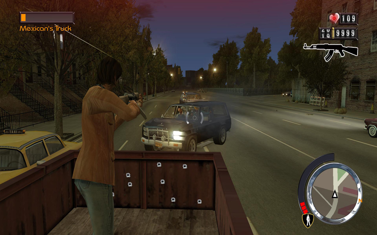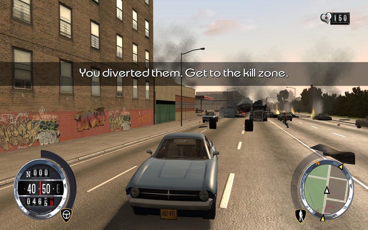 ついにマルチネスの誘拐を実行する。さすがはキャンディー。かなり手の込んだミッションを用意してくれやがった。おかげで作戦を遂行するこっちは非常に大変で,いい迷惑である。さて,作戦の概要はこうだ。マルチネスの乗ったリムジンは複数の護衛車に守られて走行しているので,一台ずつ護衛車を潰しながらリムジンを誘拐ポイントまで誘導して,マルチネスを誘拐する。