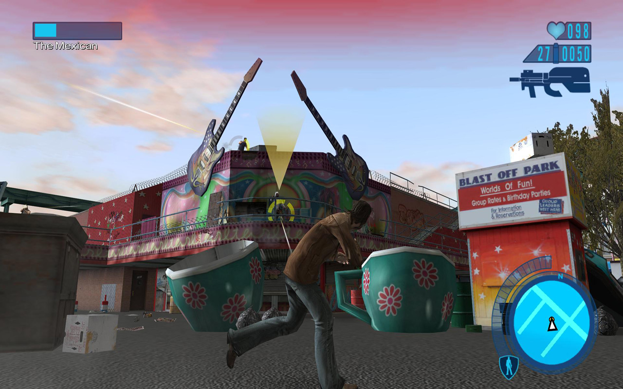 復讐劇の最初のターゲットとなるのは,メキシカンだ。目の前に現れたのがキッドと分かったメキシカンは,電車に乗って逃走を図るので,制限時間内に次の駅まで車で電車を追いかける。電車を降りたメキシカンは遊園地に逃げ込み,メキシカンおよび仲間達と銃撃戦を繰り広げることに。