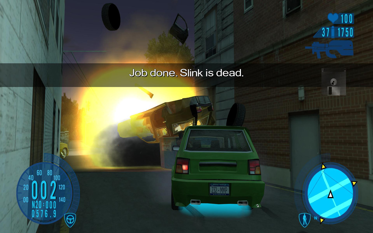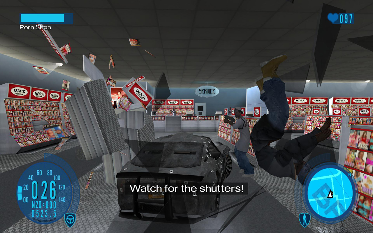 レイの話によると,スリンクはこちらの動きを警戒しているらしい。そこで挨拶代わりに,スリンクが経営しているポルノショップを「こんにちは!」とばかりに破壊することにしてみた。生意気なことに店は繁盛しているらしく,三店舗も持っている。同時に襲うのは難しいため,足の速い車を使って一軒ずつ手早く破壊していくことになる。