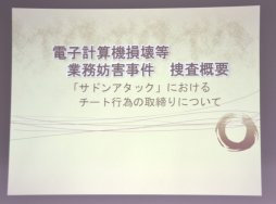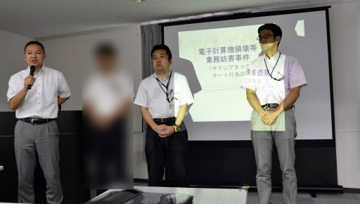 情報共有会は,神奈川県警本部のサイバー犯罪対策課の面々によって進行された。サイバー犯罪対策課は2013年4月に立ち上がった課で,現在は60名ほどが所属しているという。今回は,事件を担当した責任者以外にも,広報などを担当する対策係や,技術指導係も登壇していた。