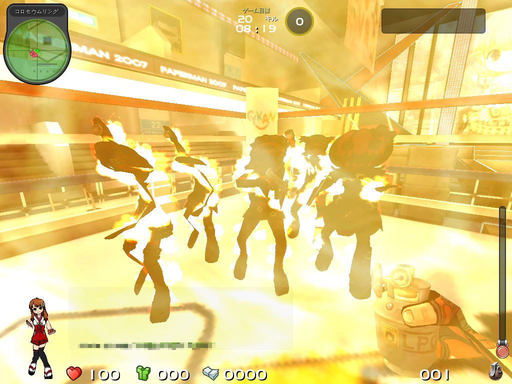 最低二人から最大16人まで参加できるモード。自分以外はすべて敵という分かりやすい話になっている。制限時間内に一定の数の敵を倒すか,終了時により多くの敵を倒したプレイヤーが勝利を収めるというシステムなので,ペーパーマンビギナーの練習にはもってこいだろう。