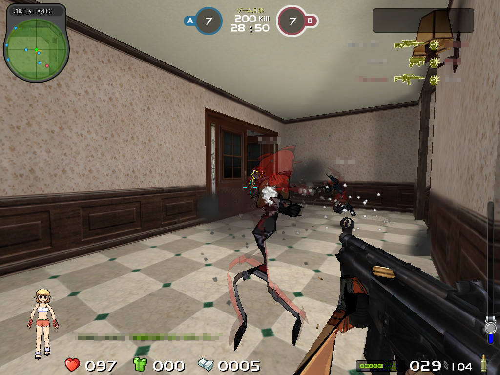 さらに,銃器の販売も考えられているが,類作のようにゲーム内で得られる「経験値」を貯めて入手するのか,有料だけになるのか,さらにそれらの武器が「レンタル制」になるのか,それとも永久使用が可能なのかなどは鋭意調査中。いずれにしろ,正式サービスが始まった暁には,冬にはミニスカサンタ,夏にはビキニと非常に嬉しい衣装を着たキャラクターが跳んだり跳ねたり撃ち合ったりすることになるだろう。うふふ。紙だけど。