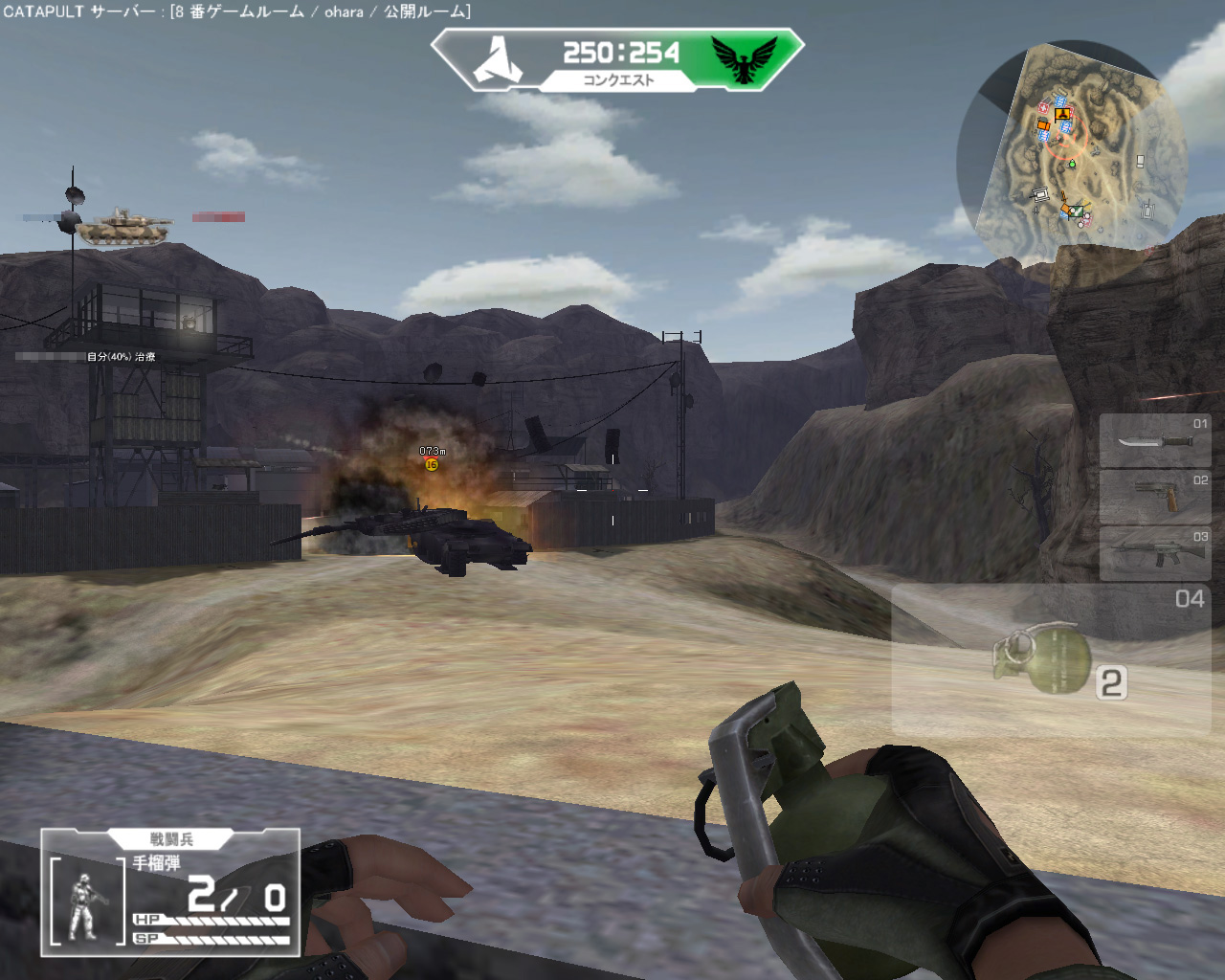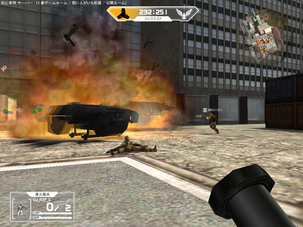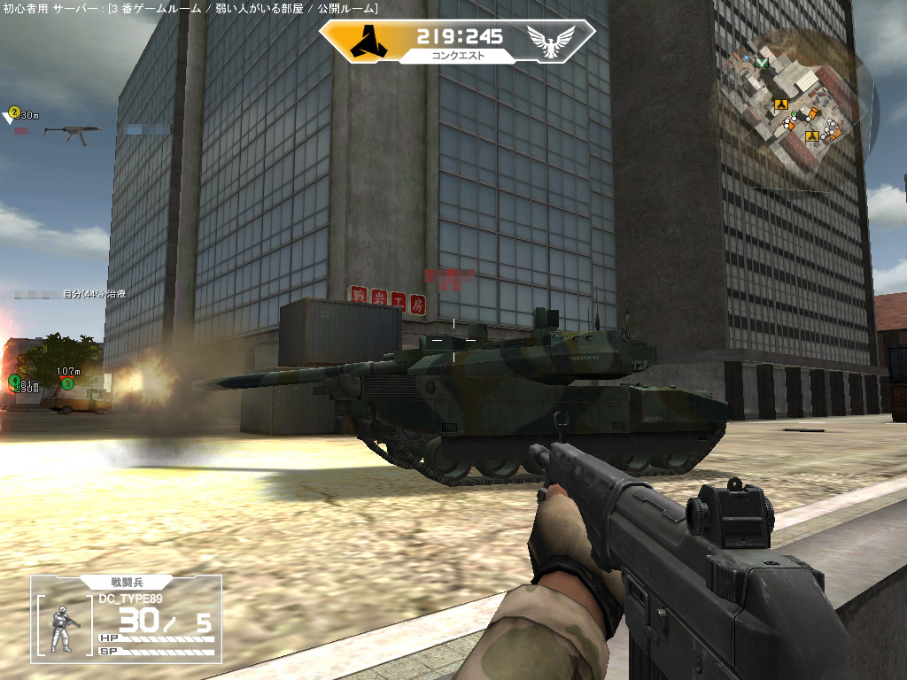 後述するが,WarRockには,ほかのカジュアルオンラインFPSにはない要素として「中/大規模戦」があるのだ。バトルフィールドシリーズのように戦場には兵士だけでなく,戦車や装甲車やボートやヘリコプターや飛行機などが置かれており,それらに勝手に乗り込んでガンガン戦えるという寸法だ。