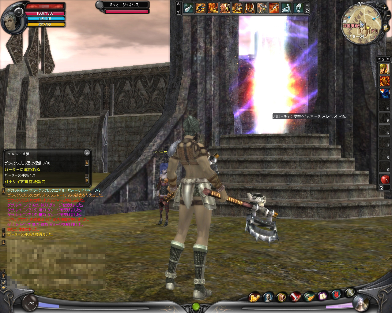 同様に,2次国境地帯へはレベル20からレベル30まで参戦できる。3次国境地帯へはレベル制限なく入れるようになっているのだが,ポータルのある場所が遠く,高レベルのモンスターが徘徊するフィールドを通り抜けなければならないので,低レベルのうちに出向くのはやめたほうがよい。