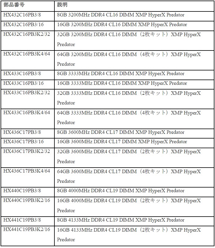 HyperX,ゲーマー向けDDR4モジュールのラインナップを拡充。DDR4-4133対応の2枚キットなどが国内発売