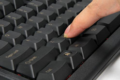 ただ,比較的浅い位置でキーが反応してくれるので,浅く操作するクセが付くと,俄然素早く操作できるようになるのも確か。底付きのコツコツコツという感覚を減らすよう,意識して浅めに操作してしていると,操作が俄然スムーズになるので,このあたりは慣れが必要だろう。ただ,45gと30g,どちらのほうが慣れやすいかというと,筆者は30gのほうに軍配を上げたい。