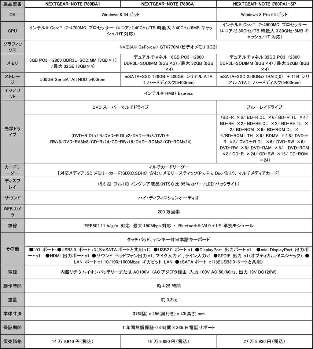G-Tune,GTX 700MシリーズとHaswellを搭載するゲーマー向けノートを発売