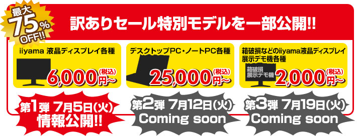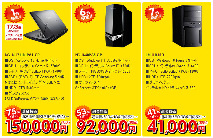 マウスコンピューターの飯山工場が7月23日に「訳ありセール」を実施。税込60万円のゲームノートPCが1台限り15万円に