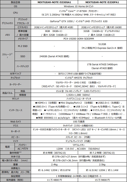 G-Tune,GTX 1050と6C12T対応CPUを採用したゲームPC発売