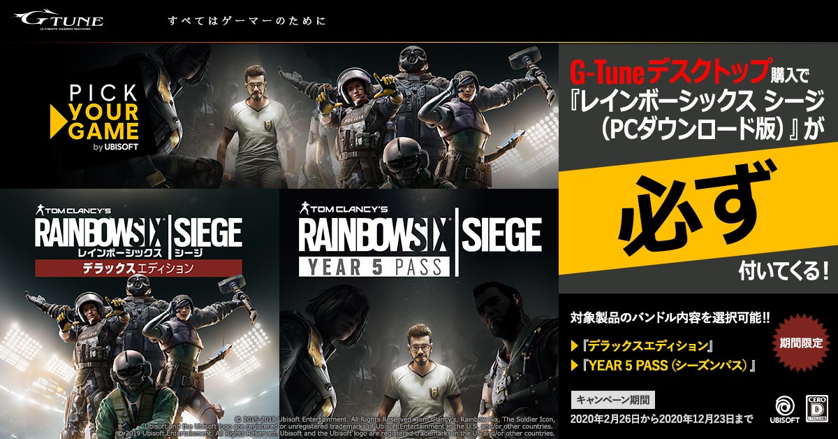 G-TuneのデスクトップPC購入で「レインボーシックス シージ」がもらえるキャンペーンが始まる