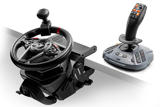 Thrustmaster製のステアリングホイール「T248」「T128」と組み合わせることも可能なので,ホイールとスティックで操縦という臨場感のあるプレイができる。