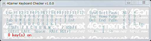 以上,「ちょっと」にしては長くなってしまったが,4Gamer Keyboard Checkerは,ゲーマー向けキーボードで重要なキーワードとなる,これらロールオーバーや同時押し周りをチェックするために役立つはずのものだ。普段使っているキーボードでどこまでゲーム用途に応えられるか検証する目的ではもちろん,ゲーマー向けキーボードの購入後に,仕様を確認する目的など,さまざまに活用していってもらえればと思う。