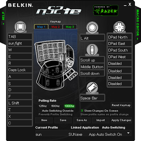 しかもn52teでは,27キーの設定内容を一つのキーマップとして,本体内蔵フラッシュメモリ「Razer Synapse」に最大3パターンを保存して,切り替えられる。やろうと思えば,一般的なノートPCと同等程度のキー数を確保できるわけだ。