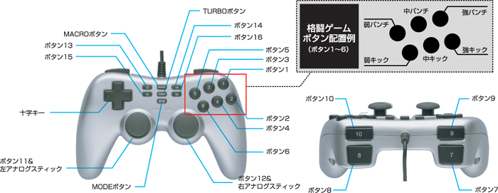 バッファロー,格闘やシューティング向きを謳う16ボタンパッド
