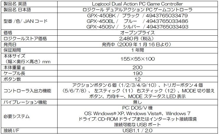 ロジクール製ゲームパッド「GPX-450」が「タルタロス」の推奨取得