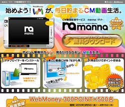 なんと,専用のmannaプレイヤーをインストールして動画CMを見るだけで,WebMoneyと交換可能な「マナポイント」が,知らず知らずのうちに溜まっていくのである。