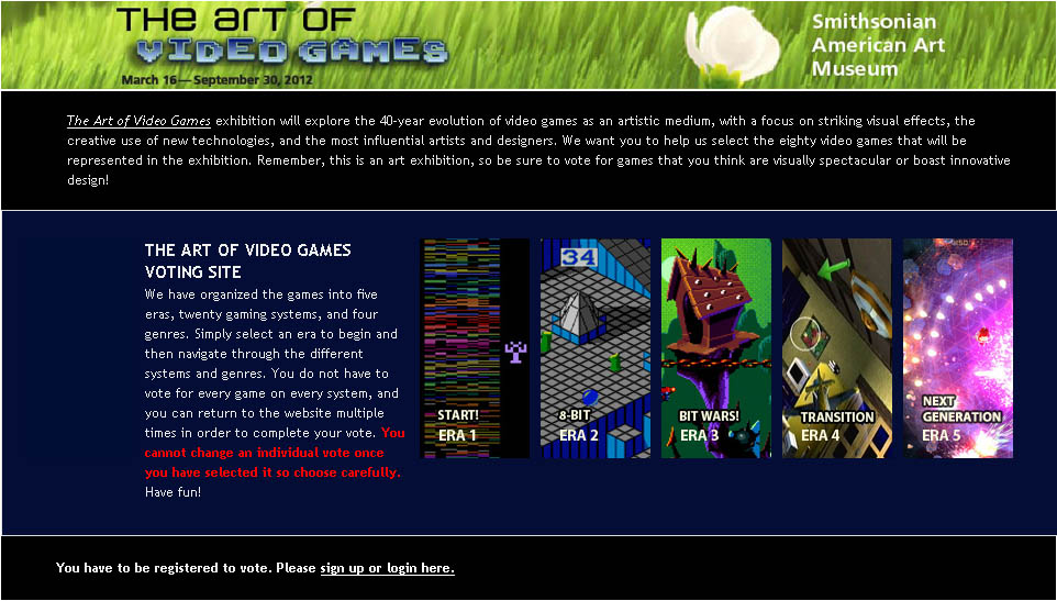 スミソニアン美術館が「The Art of Video Games」を,2012年3月16日から開催。展示するタイトルは,一般からの投票で決定