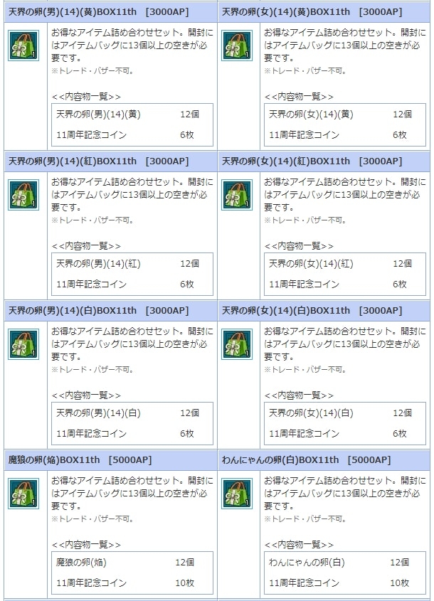 「AngelLoveOnline」,エンジェルモールに「各種卵BOX11th」を期間限定で追加