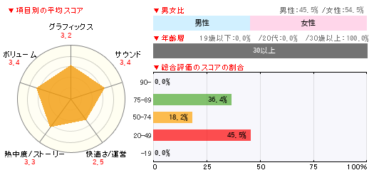 グラフィックス サウンド 快適さ/運営 熱中度/ストーリー ボリューム 3 4 5 3 3 -