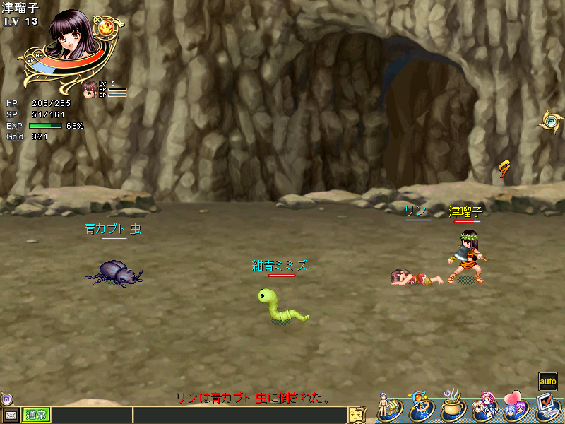 可愛いリンを盾にするつもりは毛頭なかったのだが,うっかり戦闘不能にすること数十回。「友好値」が下がりすぎたリンは「実家に帰らせていただきます!」と言ったとか言わないとか。仲間から離脱してクラン村に帰ってしまった。