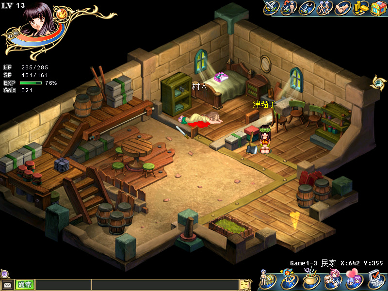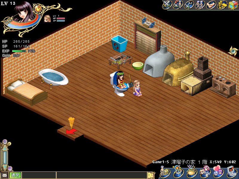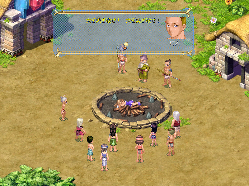 原油を無事手に入れ,ホクホク顔でサウスアイランドに戻ってきた津瑠子。これで少しでも文化的な生活を,可愛いレイチェルやニースに送らせてあげられる。リンといいレイチェルといい,ノースアイランド出身のNPC達はやたらとプリミティヴな衣装を身に着けているのに対して,サウスアイランド唯一の村「クライスト村」は少し文明が進んでいるのか,人々はきちんとした洋服を着て,村の中央には立派な教会が設立されている。宗教と信仰が人々に進んだ文明と豊かな生活をもたらすという示唆か? などという穿ったものの見方はやめておこう。
