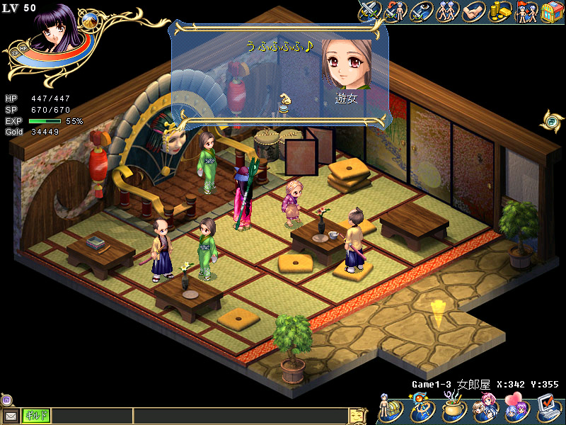 さて,海外産のMMORPG内で再現される日本といえば,「チョンマゲと日本刀と着物があればいいんでしょ!」といわんばかりのステレオタイプなものが多く,たいていは“不思議の国ヤポン”みたいな結果になる。Wonderlandの「関西」はそれに比べると,実に満足度の高い日本が再現されていると思う。街中には遊女屋があって遊女がちゃんといて(最初に見るとこがそれか),お代官がいきなり切り殺されて,お白州では大岡裁きが行われている。うん,これぞニッポン。惜しむらくは「あれぇ〜お代官様〜」(くるくるくるっ)と「おぬしも悪よのぅ」が見られないことくらいだ。