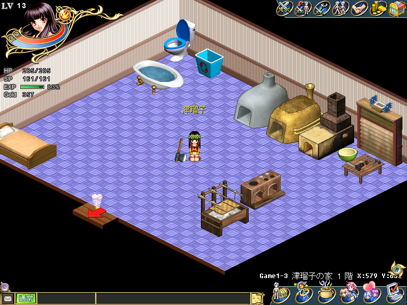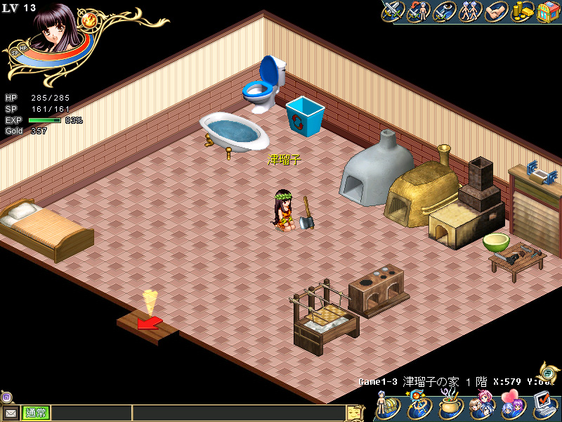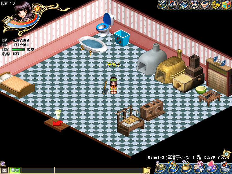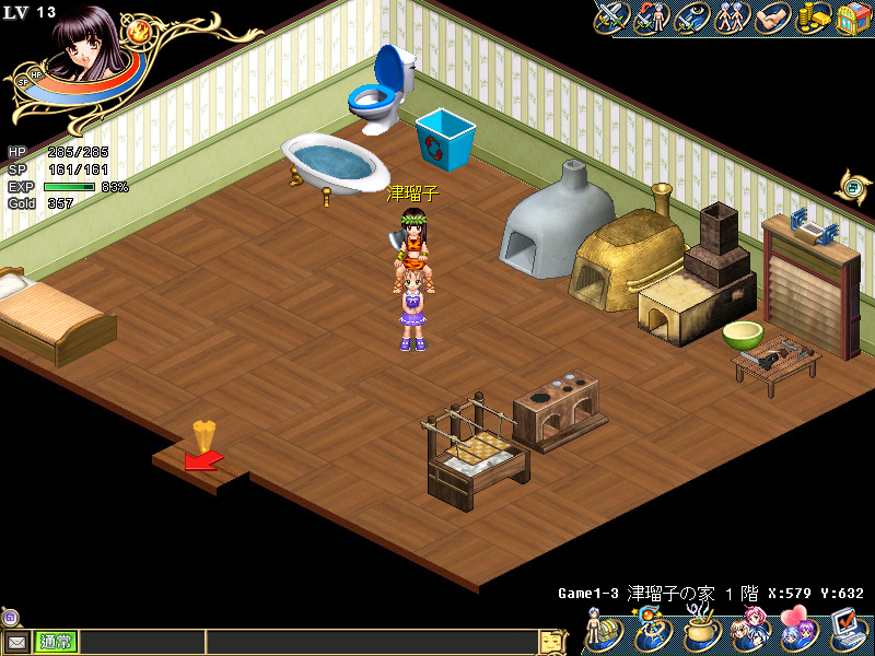 ちなみに,手漉き和紙の壁紙というのは品質によってピンキリだが,高級なものになると100×200cmで4万〜5万円もする。セレブの中には,自宅の書斎を金箔で埋め尽くす趣味の方々もいらっしゃるようだが,津瑠子のテントの無駄遣いっぷりにはかなうまい。気分転換のためだけに,1日で壁紙を4回も張り替えたのだから。Wonderlandプレイヤーで,まだテントは初期状態のままだという読者は,下記のスクリーンショットを参考に,壁紙とタイルの貼り替えに挑戦してほしい。