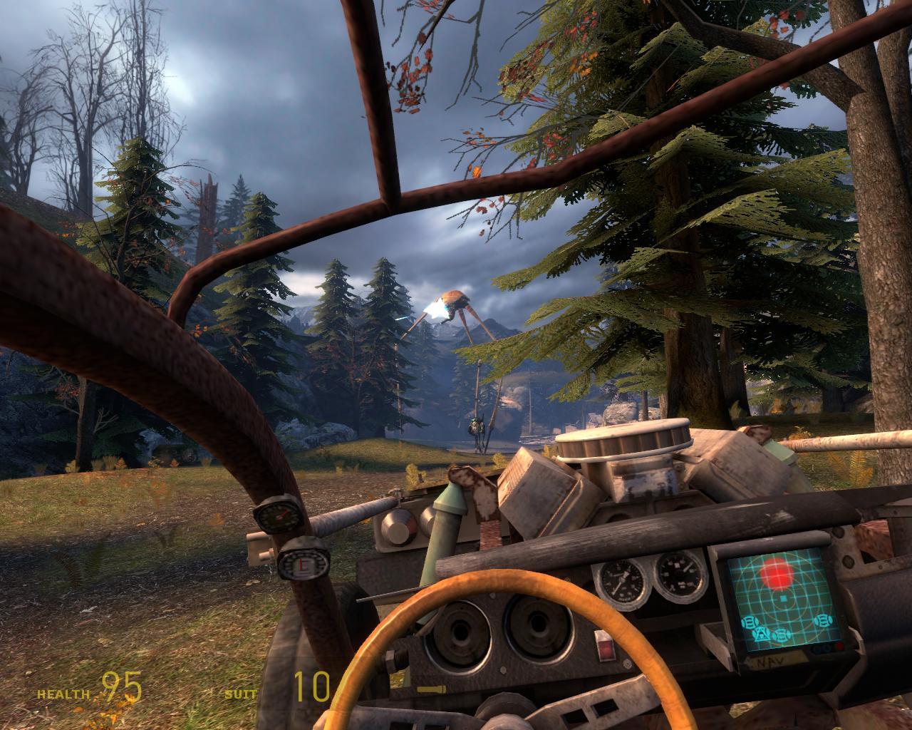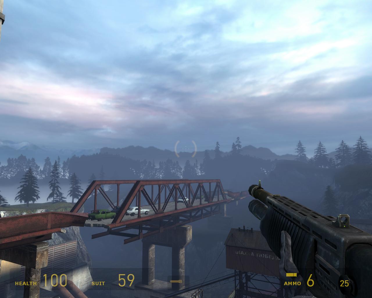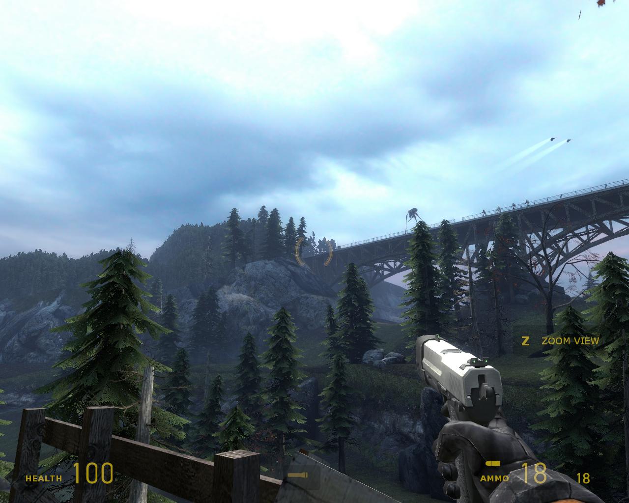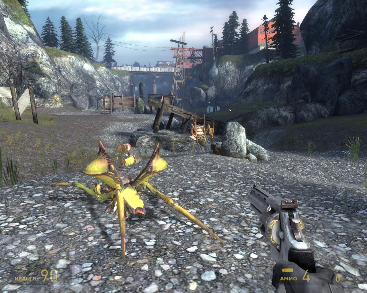 さて,なんか言い忘れていたなあと思っていたが,そうそう,ハーフライフ 2シリーズはFPS(一人称視点シューティング)である。ゴードンを操作し,出てくる敵に弾を当てたり,敵の弾をよけたりしてステージを進んでいくのだ。そういうことは最初に言っておけよ,おれ。