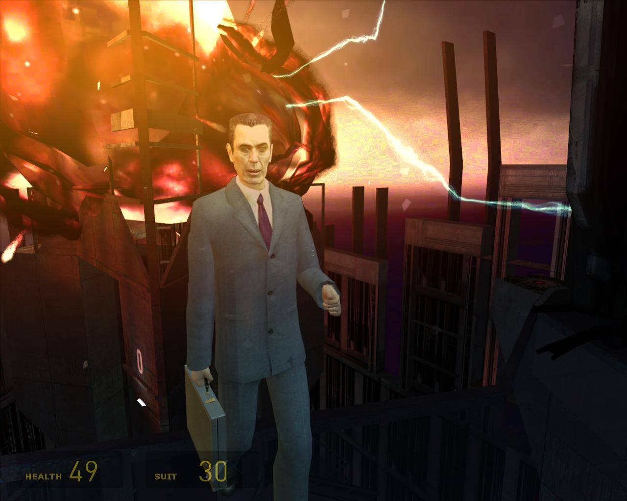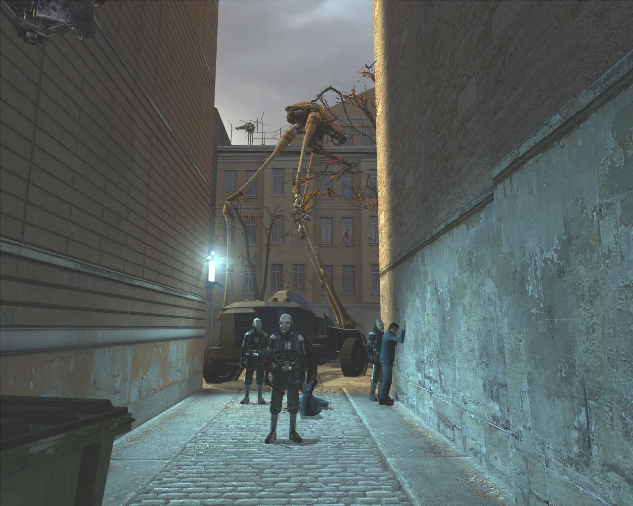 街をさまようゴードンは,やがてアリックスと彼女の属するレジスタンスの人々と知り合い,彼らに協力して何やかにやの末,コンバインの本拠地である要塞に潜入する。捕らわれのイーライ・バンス博士を救出し,悪いブリーン博士を追い詰めるゴードンとアリックスであったが……というのがハーフライフ 2本編のお話。