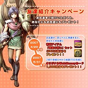 既存ユーザーが新規ユーザーを紹介し、新規ユーザが一定レベルに達すると双方に課金アイテムのセットがプレゼントされるキャンペーンです。