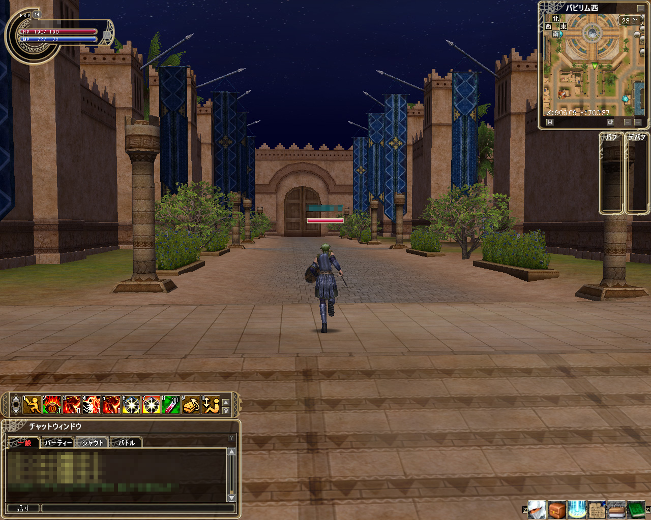 原作を知る人なら,ゲーム開始直後は少々戸惑うかもしれない。というのも,スタート地点が塔ではなく,ラジャフと呼ばれる村だからだ。塔は村からさほど遠くない,ラジャフ街道の先にあるのだが,何の準備もなしに乗り込んで攻略できるほど甘くない。そこで一般的なMMORPG同様に,フィールドに点在するモンスターを倒して経験値を稼ぎレベルアップ,ドロップアイテムを売って装備や消費アイテムを充実させる必要がある。