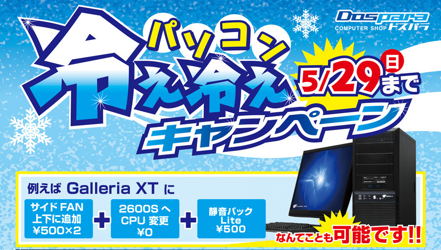 ドスパラのPC購入時にファンや低消費電力CPUを特価で選択可能。29日迄