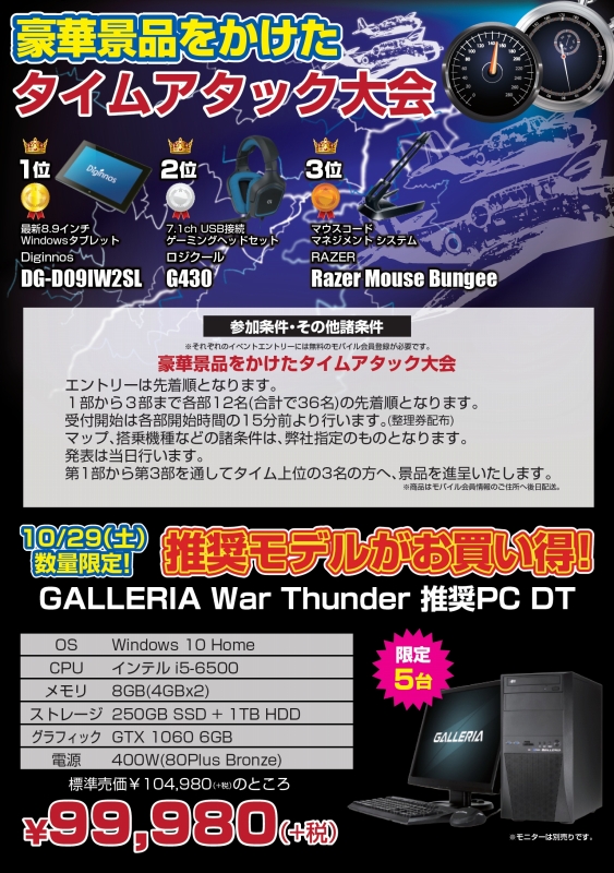 ドスパラ秋葉原本店,「War Thunder」推奨PC発売記念イベントを10月29日に開催