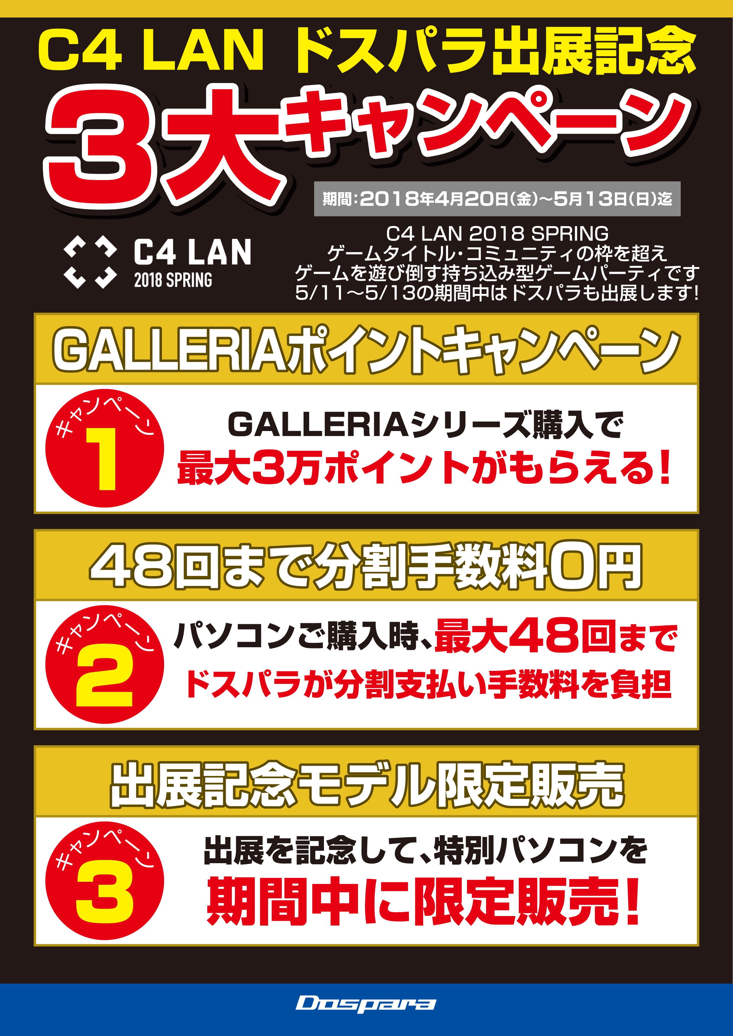 GALLERIA,ゲームPC購入時の分割払い手数料48回まで無料など,「C4 LAN」出展記念キャンペーンを開催