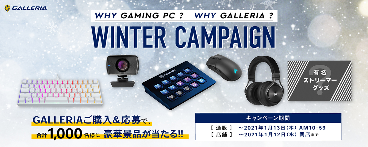 GALLERIA製PC購入でゲーマー向けデバイスなどが当たるキャンペーン