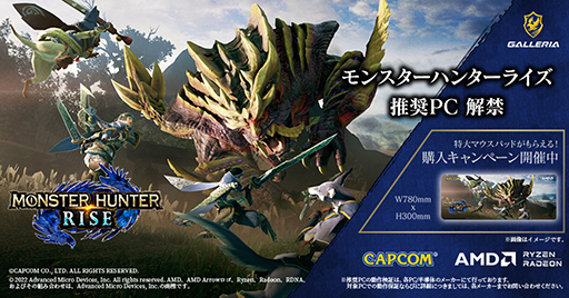 GALLERIA,「モンハンライズ」推奨PCを発売。先着でオリジナルマウスパッドがもらえる
