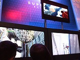 スーパーマンの特殊能力を使って反撃を試みたものの,なかなかうまくいかなかったので,ブースの係員の指示を仰ぎ,ビルの屋上に備え付けられている金属製の球体を投げつけたり,看板を楯として使い,ロボットが放つレーザー光線を跳ね返したりすることで,どうにか対等に渡り合えた。巨大な敵の周囲を軽快に飛び回れるのは,なかなか爽快だ。