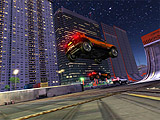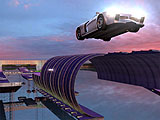 さあ,ジャンプやループ,そそり立つ壁,数々の障害物など,とんでもないコースを作って,そこを時速400キロ(当社推定)で走り抜ける大迫力のレースゲームを堪能しよう。(松本隆一)
