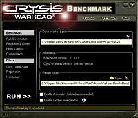 なお,もし何らかの事情でテスト中に異常終了した場合は,Crysis Warhead Benchmarkの設定から,当該解像度だけを選択してやり直せば大丈夫だ。