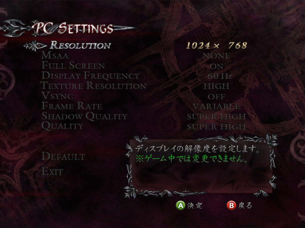 - (12)解像度を変更すると自動的にゲームが再起動するので,(3)以降を繰り返す