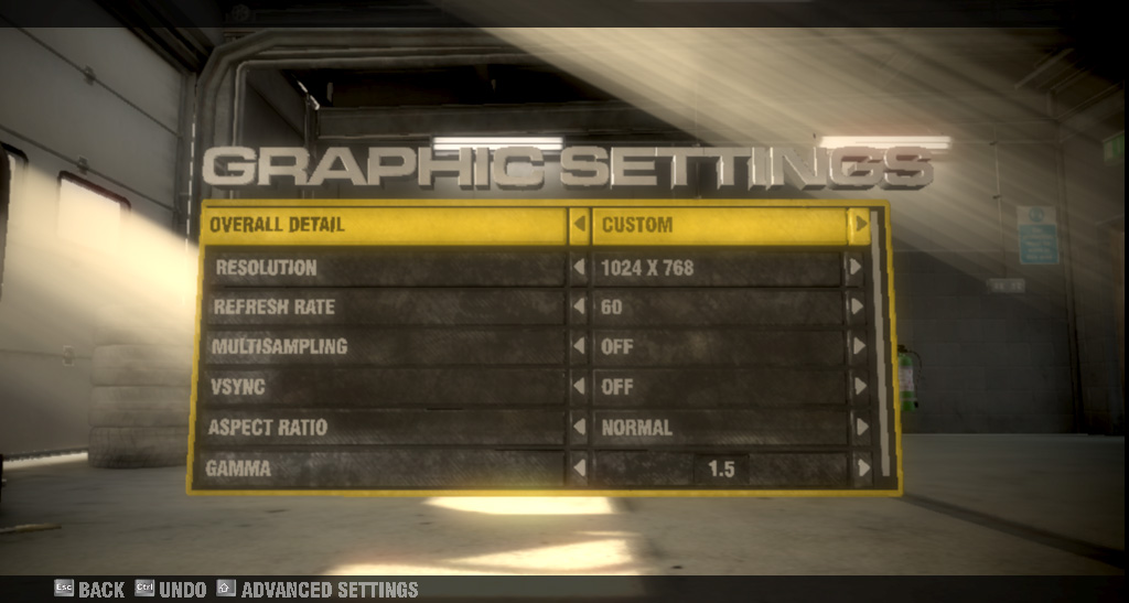 ゲーム設定「OPTIONS−GRAPHICS SETTINGS−ADVANCED SETTING」
