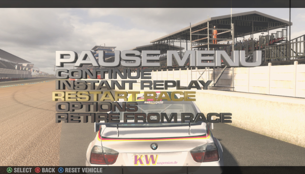 - (10)[ESC]キーを押してレースを中断し,「RESTART RACE」を選択