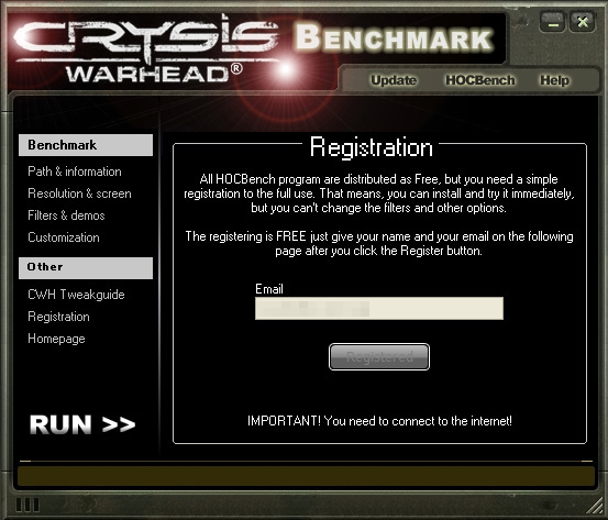 Crysis Warhead Benchmarkを実行するに当たって,Crysis Warheadを別途実行しておく必要はない(※もちろん言うまでもなく,インストールは必要だが)。下記は基本的に,Crysis Warhead Benchmarkの設定項目となるので,その点に注意しながらチェックしてもらえれば幸いだ。