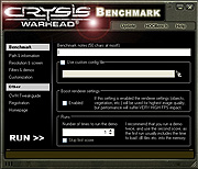 なお,もし何らかの事情でテスト中に異常終了した場合は,Crysis Warhead Benchmarkの設定から,当該解像度だけを選択してやり直せば大丈夫だ。