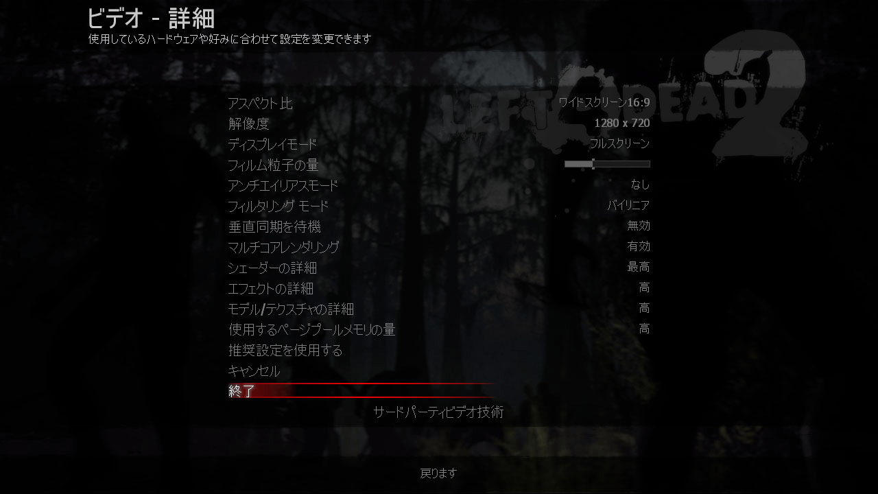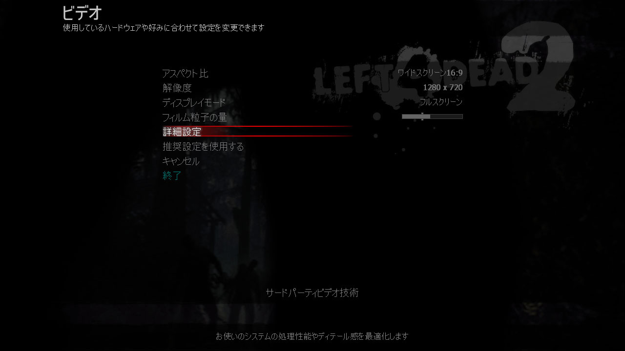 ゲーム設定:「OUTSIDE−OPTIONS−GRAPHICS−DETAIL」