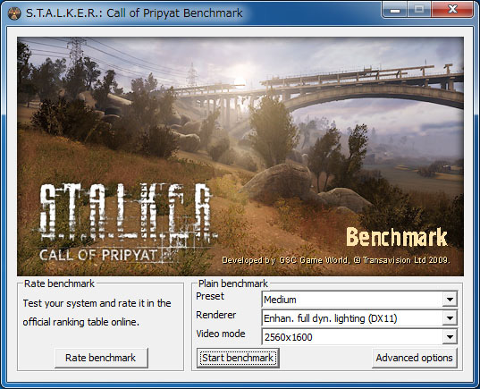 テストに用いるのは,STALKER CoP公式サイトで配布されている公式ベンチマークソフト「S.T.A.L.K.E.R.: Call of Pripyat Benchmrk」。ゲーム世界を飛び回る,いわゆるFlyby形式のアプリケーションだ。